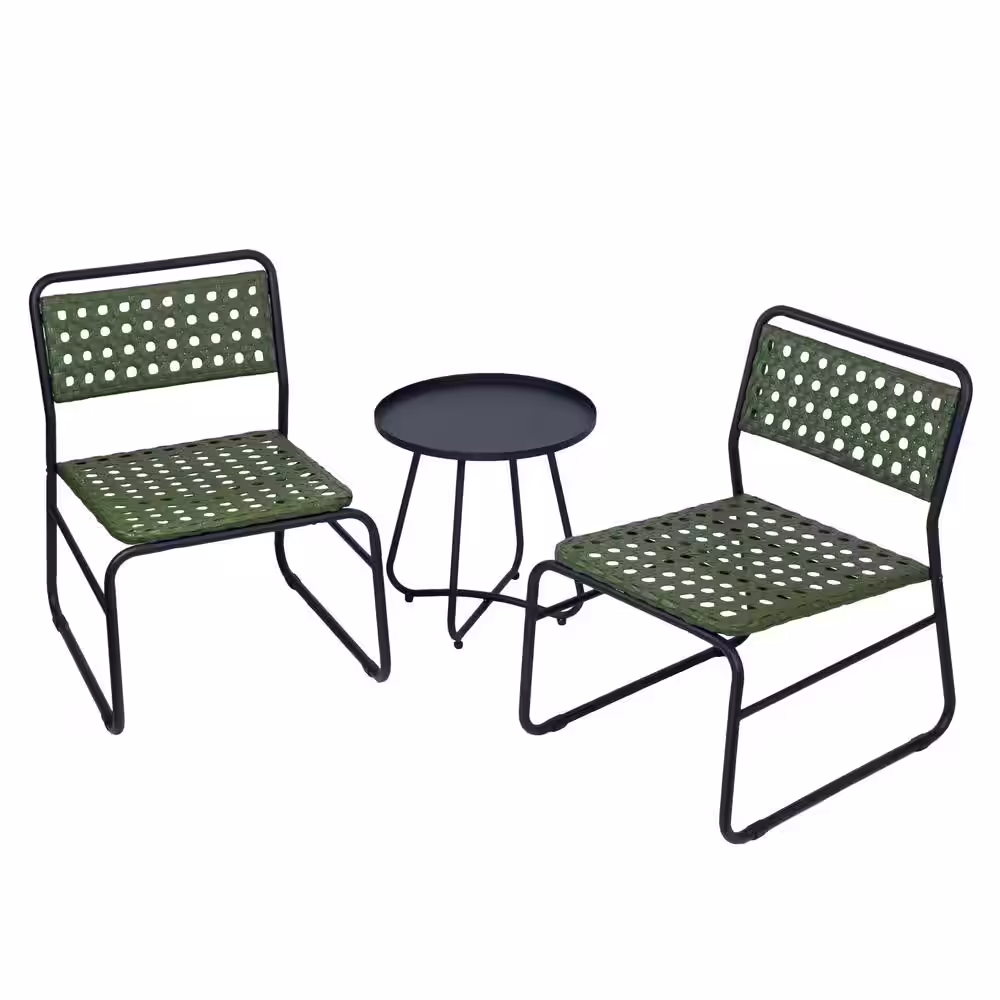 None Olive 3-Piece Outdoor Patio Bistro Set for 2 With Aluminum Frame and Rattan Wicker Seats, Black/Green