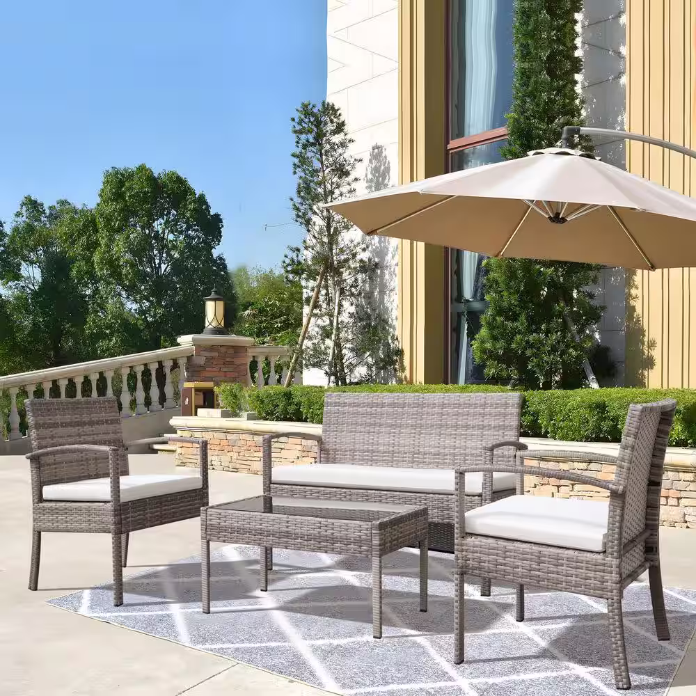 None 4-Piece Wicker Patio Conversation Set with Cushions