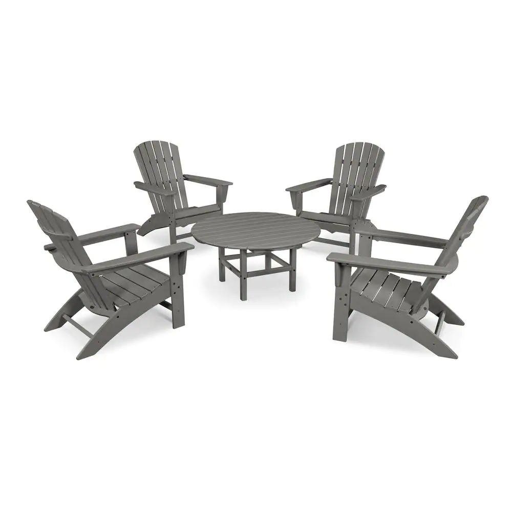 POLYWOOD Grant Park Slate Grey 5-Piece Plastic Traditional Curveback Adirondack Patio Conversation Set