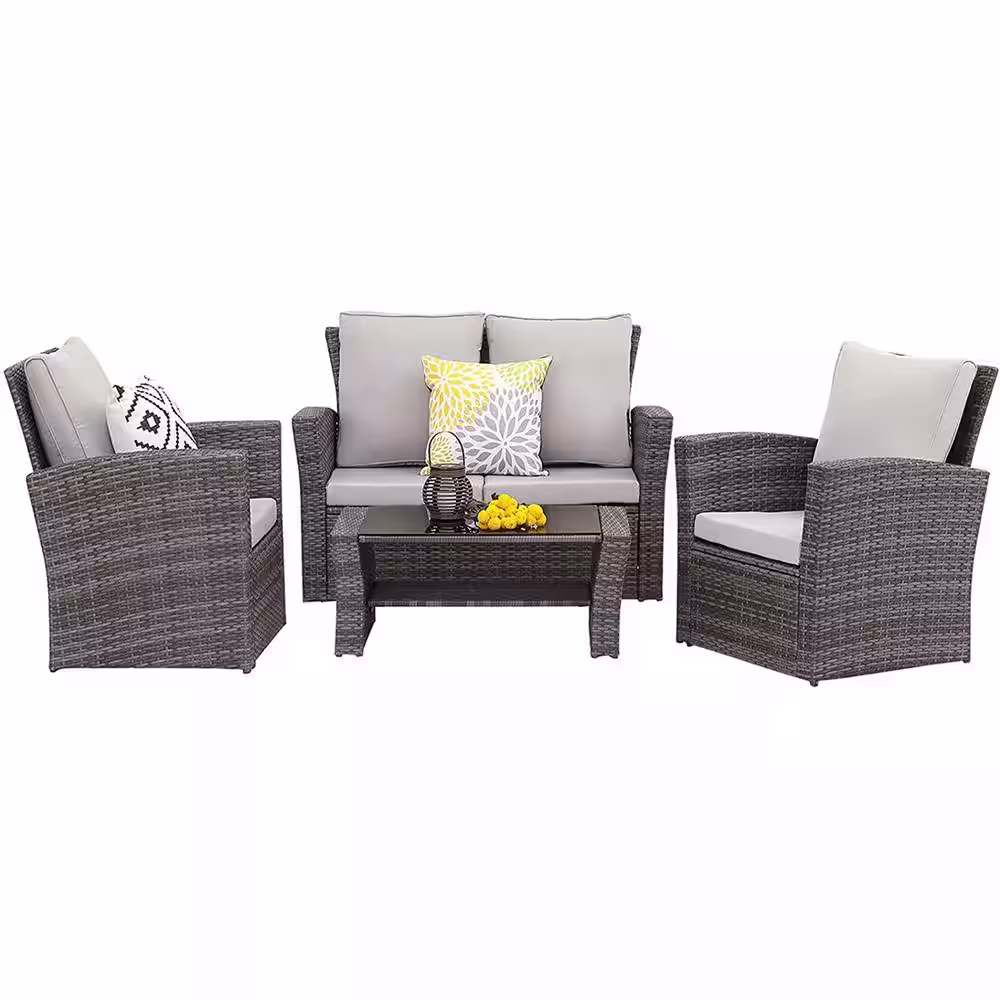 SUNVIVI 4-Piece PE Rattan Wicker Outdoor Patio Furniture Set in Grey