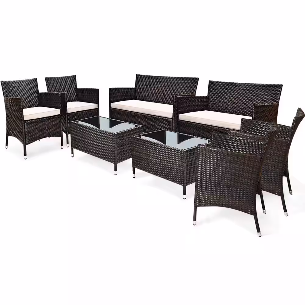 Gymax 8-Piece Rattan Patio Outdoor Furniture Set with Cushioned Chair Loveseat Table with Brown Cushions