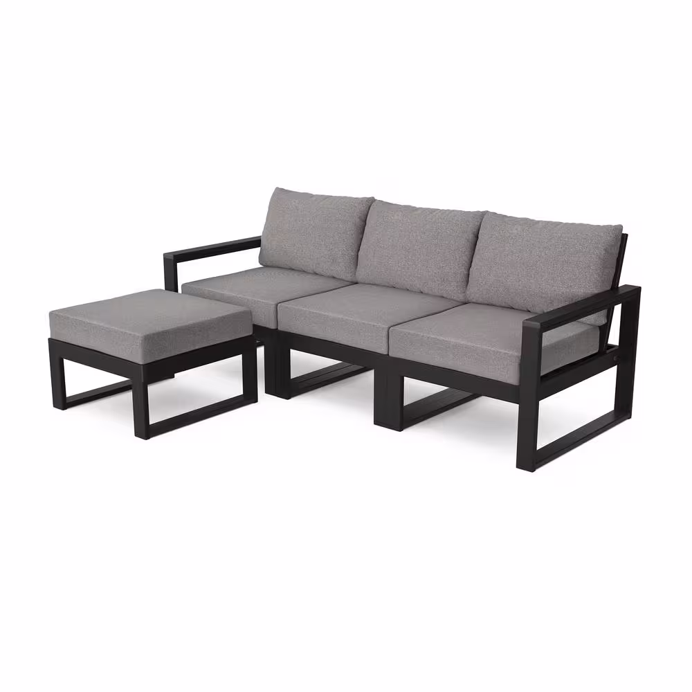 None EDGE Black 4-Piece Modular Plastic Outdoor Patio Deep Seating Set with Ottoman with Grey Cushions