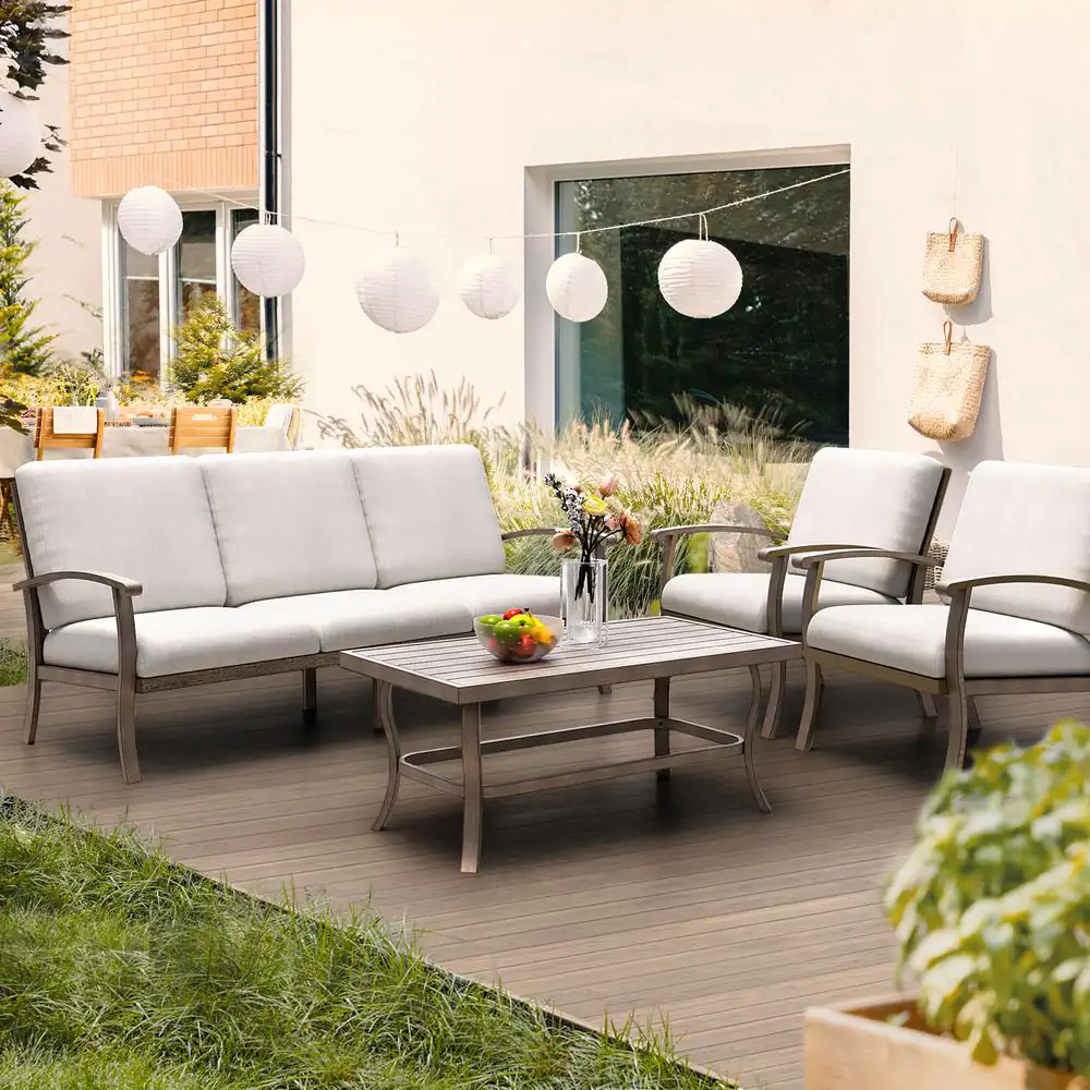 None 5-Person Aluminum Patio Conversation Set with Coffee Table and Light Gray Cushions