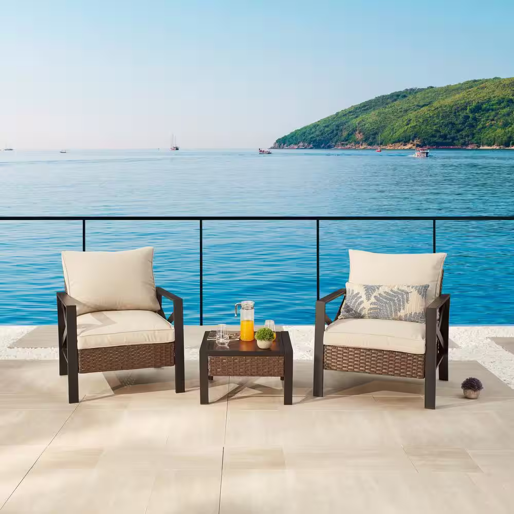 Patio Festival X-Arm 3-Piece Wicker Conversation Set with Beige Cushions