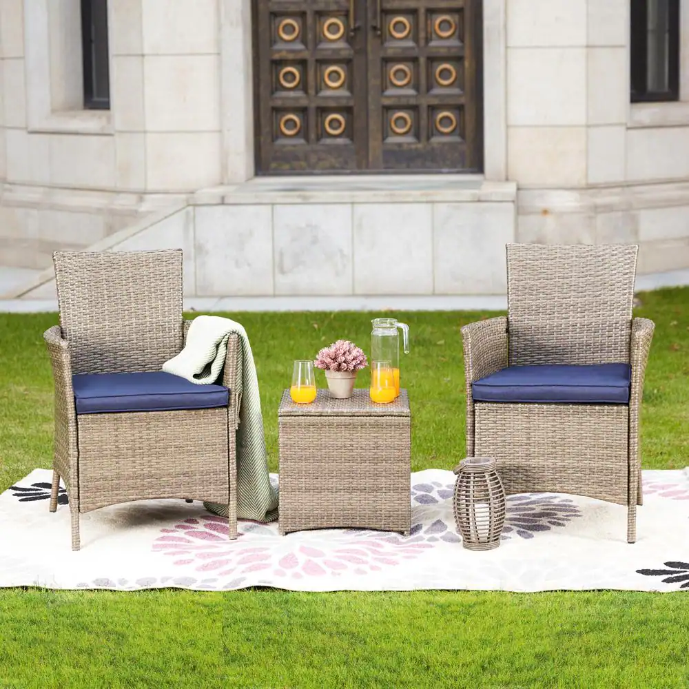 Patio Festival 3-Piece Wicker Patio Conversation Set with Blue Cushions