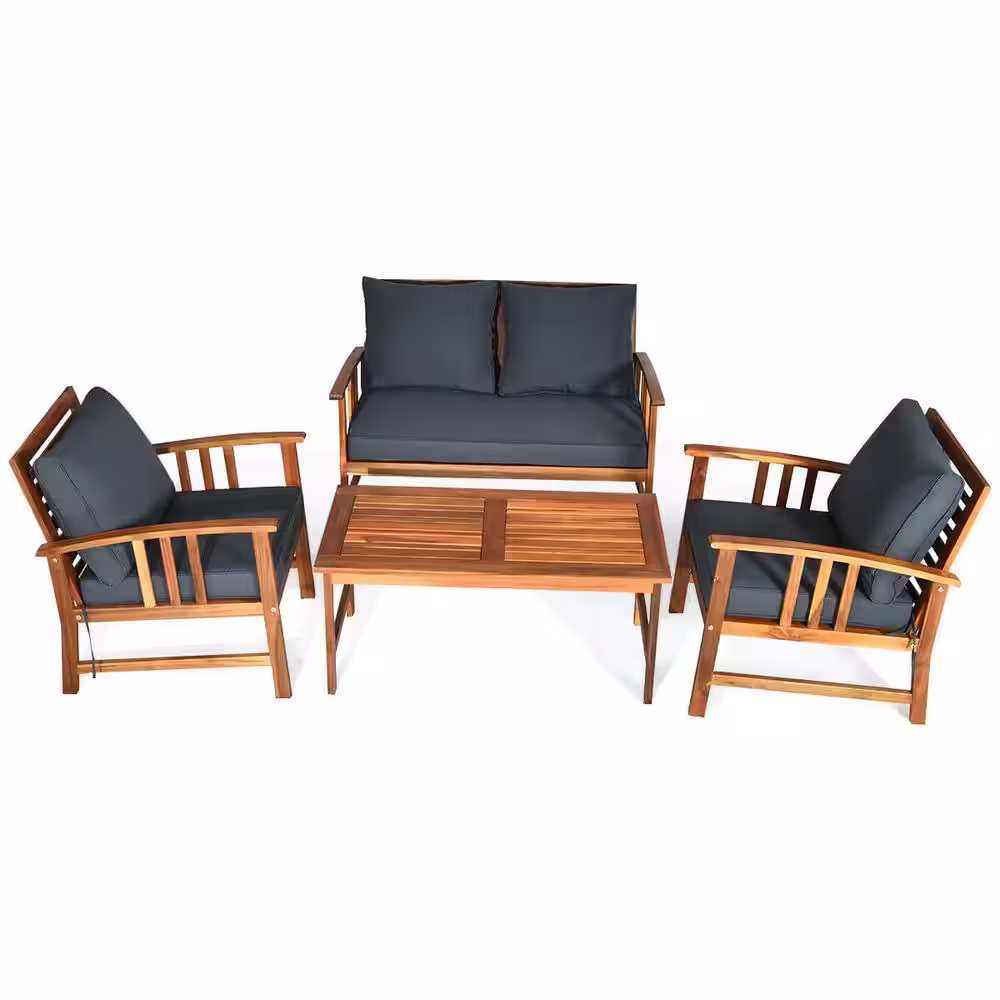 ANGELES HOME Teak 4-Piece Acacia Wood Outdoor Sofa Patio Conversation Set with Gray Cushions