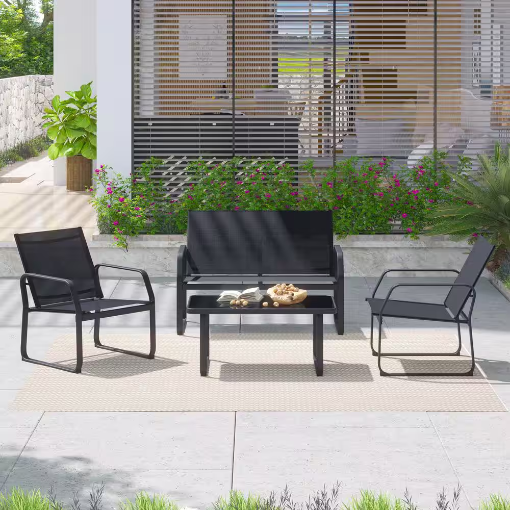 CORVUS Yorkdale Black 4-Piece Outdoor Sling Fabric Patio Conversation Set
