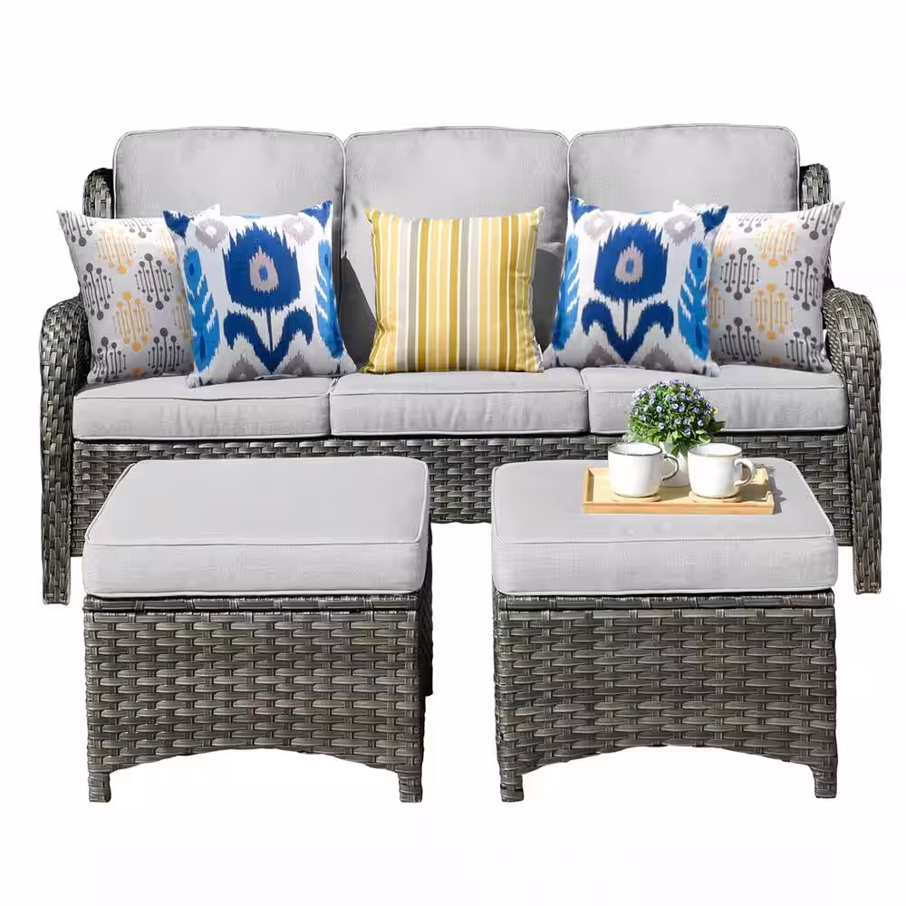 XIZZI Adelina Gray 5-Piece Wicker Outdoor Patio Conversation Seating Set with Gray Cushions