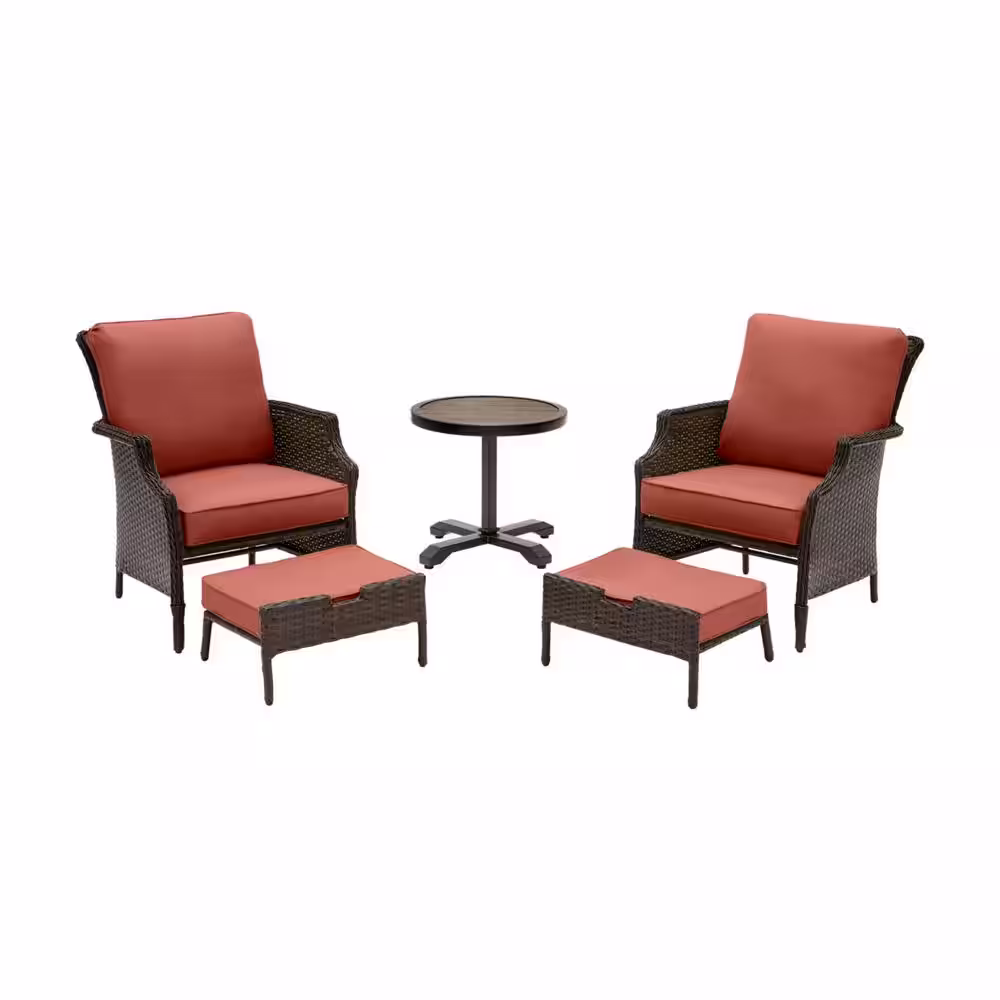 Hampton Bay Grayson 5-Piece Brown Wicker Outdoor Patio Small Space Seating Set with Sunbrella Henna Red Cushions