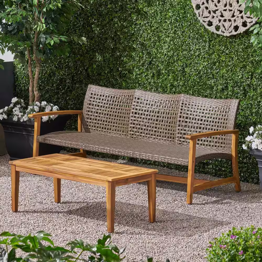 Noble House Hampton Mixed Mocha 2-Piece Faux Rattan Patio Conversation Seating Set