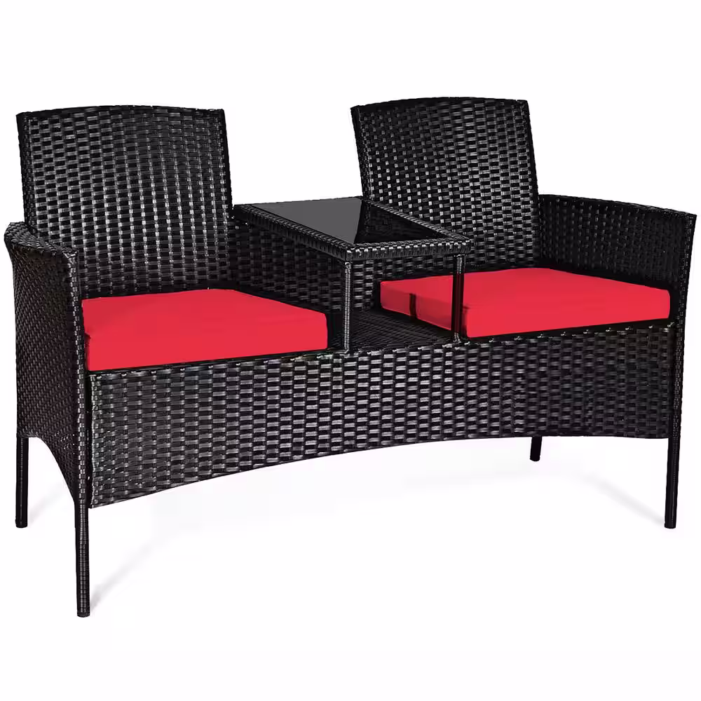 Costway Modern Black 1-Piece Wicker Patio Seating Set with Red Cushions