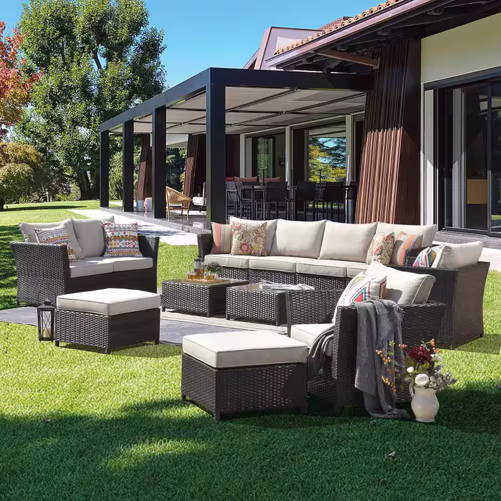 XIZZI Huron Gorden Brown 12-Piece Wicker Outdoor Patio Conversation Sectional Sofa Set with Beige Cushions