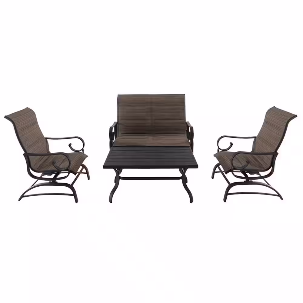 Royal Garden River Oak 4-Piece Metal Patio Conversation Set with Padded Sling