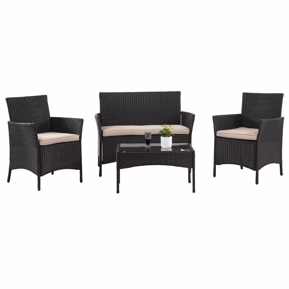 Furniture of America Eli 4-Piece Wicker Patio Conversation Set with Beige Cushions