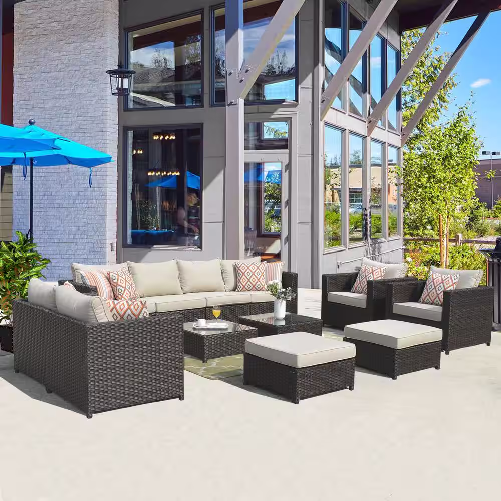 OVIOS Wassilka 12-Piece Big Size Wicker Patio Conversation Set with Beige Cushions