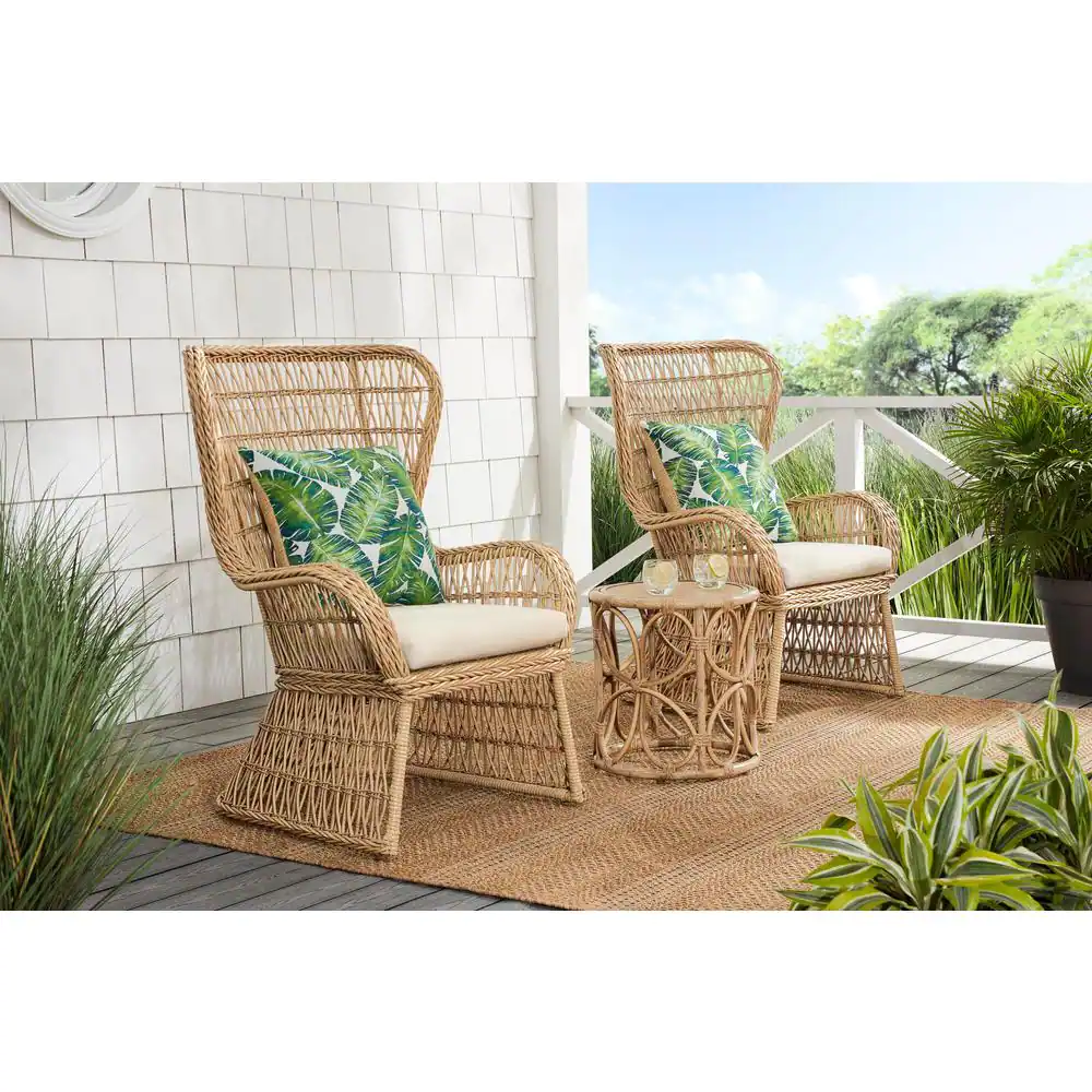 StyleWell Coco Breeze 3-Piece Brown Wicker Outdoor Seating Set with Beige Cushions