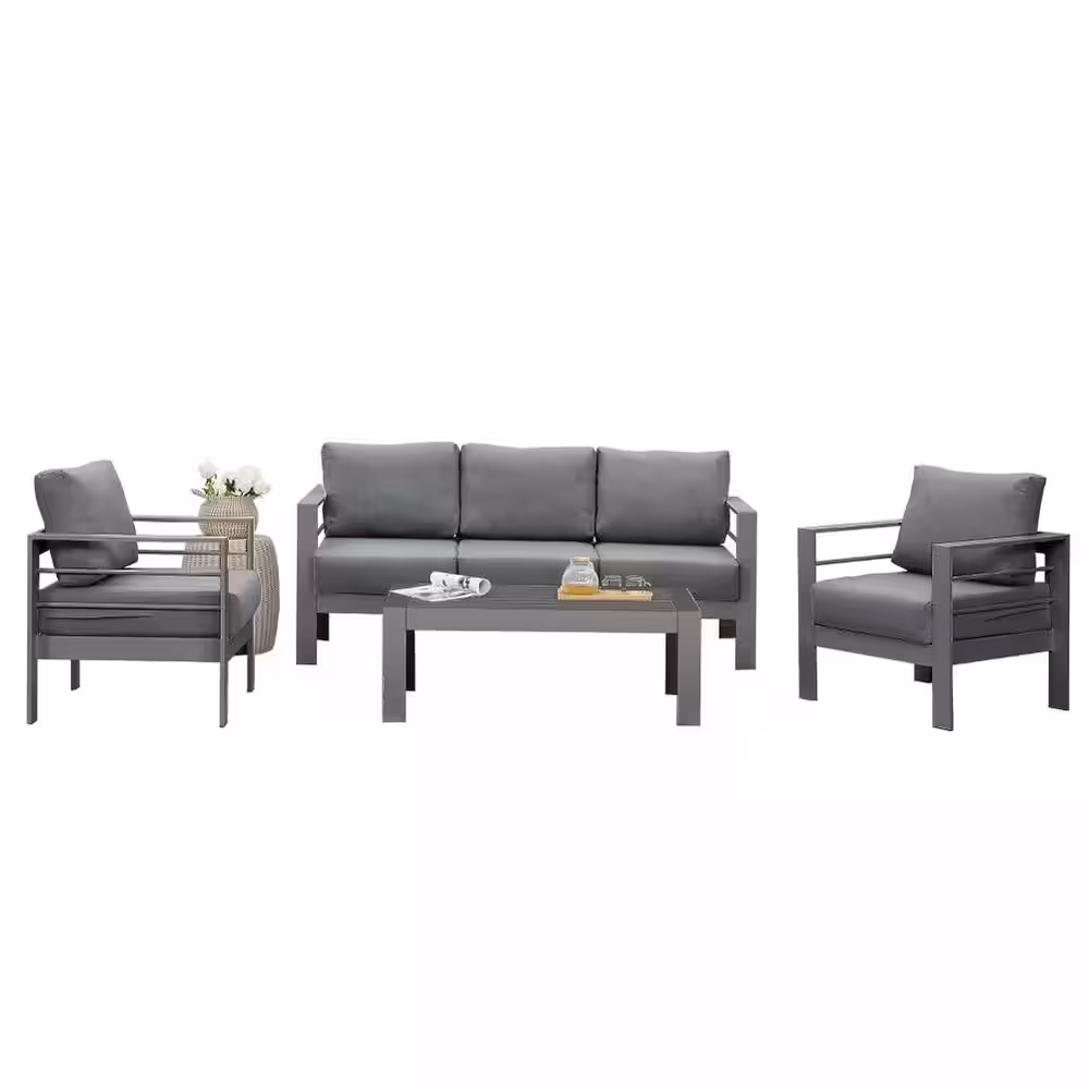 SUNVIVI Grey 4-Piece Aluminum Patio Conversation Set with Dark Grey Cushions