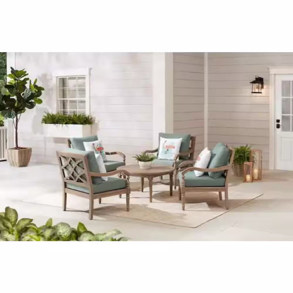 Hampton Bay Lakewood 5-Piece Eucalyptus Patio Chat Set with Spa Cushions