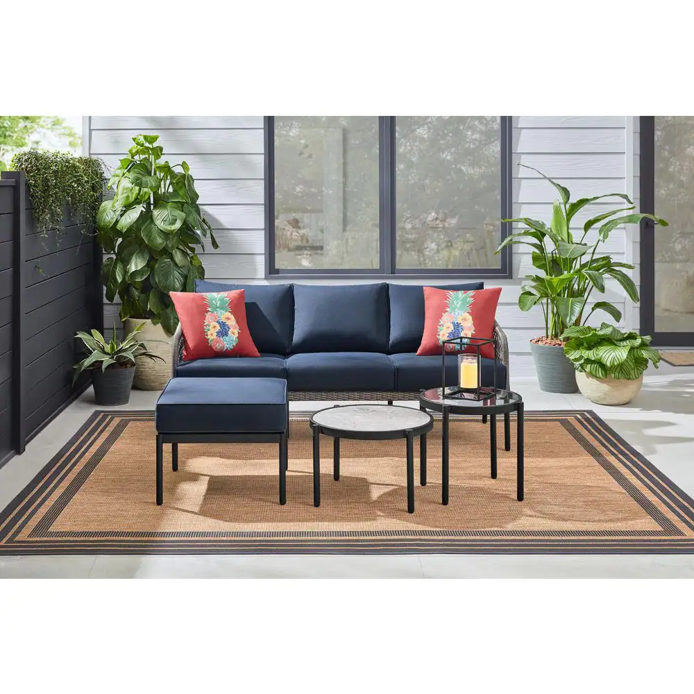 StyleWell Parker Mill Black 4-Piece Metal Patio Seating Set with Porter Midnight Cushions