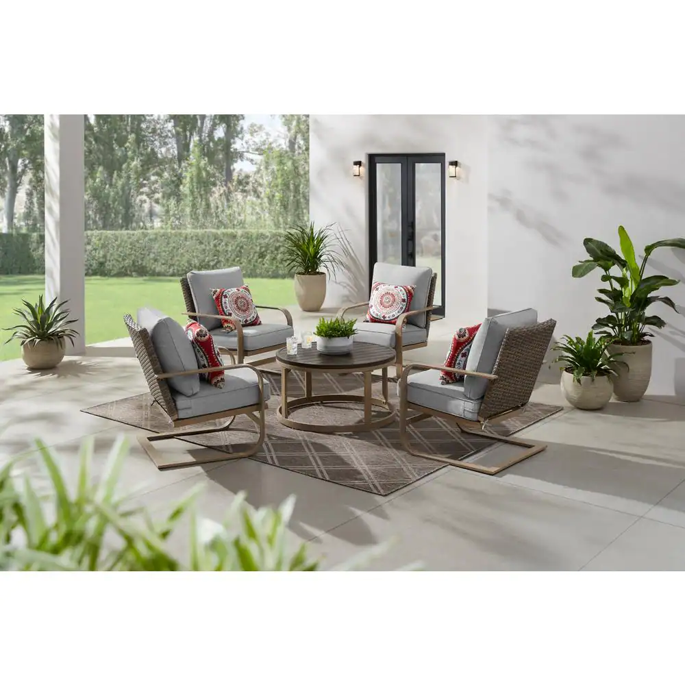 Hampton Bay Hampshire Place 5-Piece Wicker Deep Seating Chat Set in CushionGuard Stone Gray