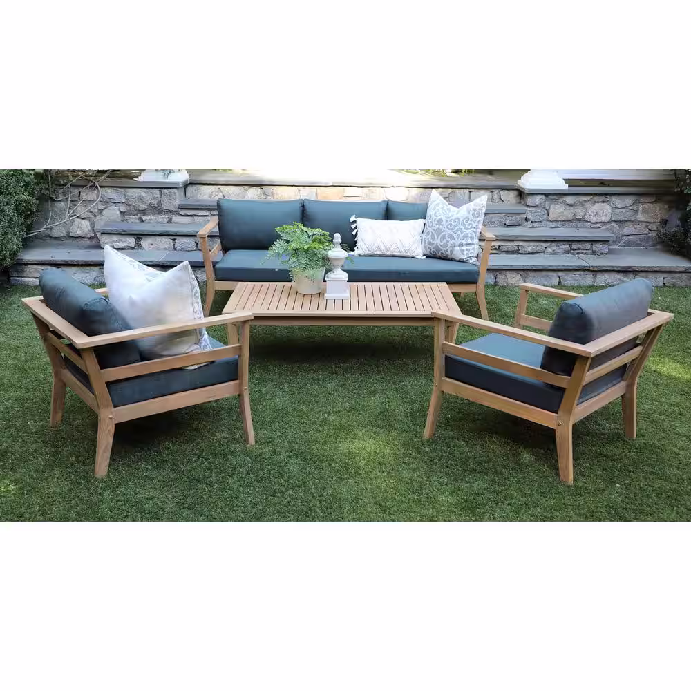 Canopy Bismarck 4-Piece Teak Conversation Set with Cast Lagoon Cushions