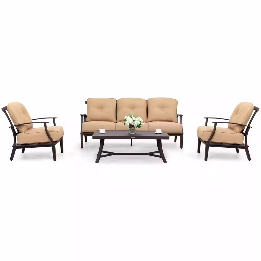 Home Decorators Collection Wakefield 4-Piece Reinforced Aluminum Outdoor Conversation Set with Natural White Cushions