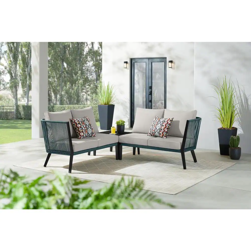 Hampton Bay Heather Glen 3-Piece Wicker and Metal Corner Patio Sectional Seating Set with CushionGuard Stone Gray Cushions
