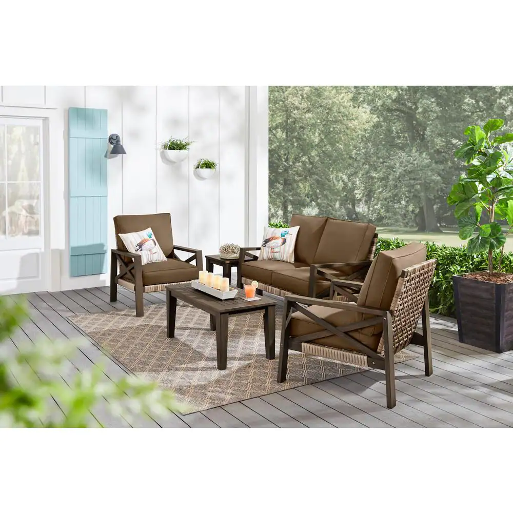 Hampton Bay Lakehaven Dark Grey 5-Piece Wood Patio Conversation Set with CushionGuard Earth Brown Cushion