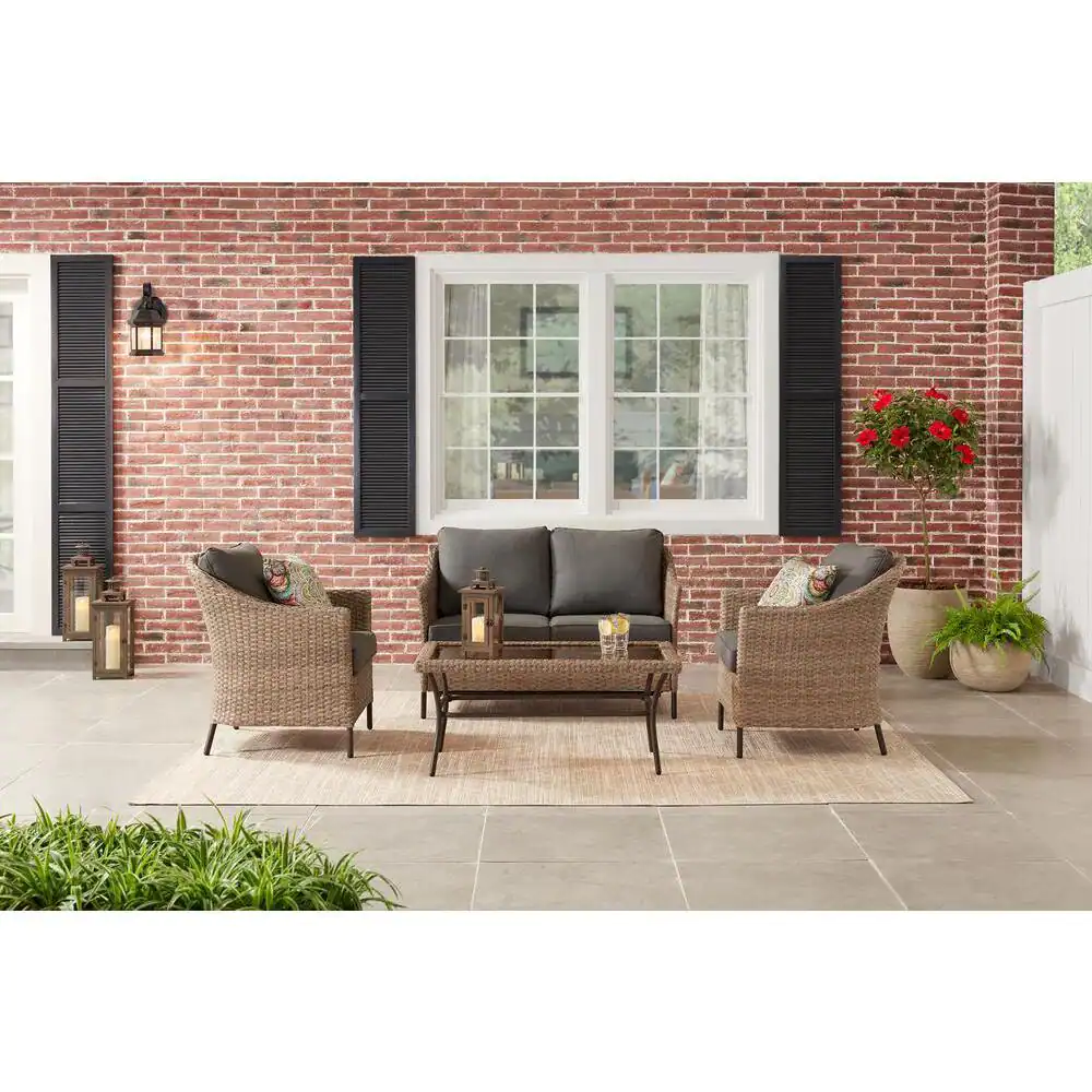 StyleWell Kendall Cove 4-Piece Steel Patio Conversation Outdoor Seating Set with Charcoal Cushions