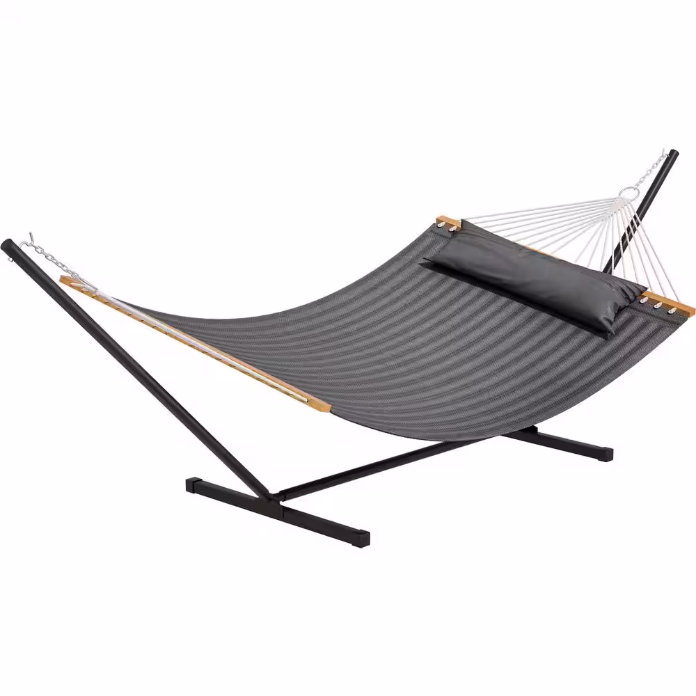 DEXTRUS 2-Person 12 ft. Free Standing Metal Hammock Stand with Detachable Pillow in Gray