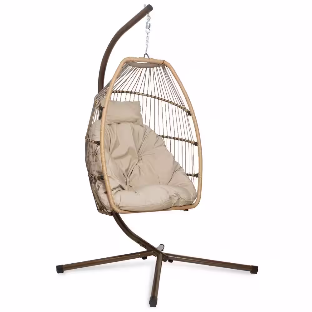 None 50 ft. Hanging Basket Chair Cushion Egg Hammock Chair Garden Swing Seat Cushion with Stand in Beige