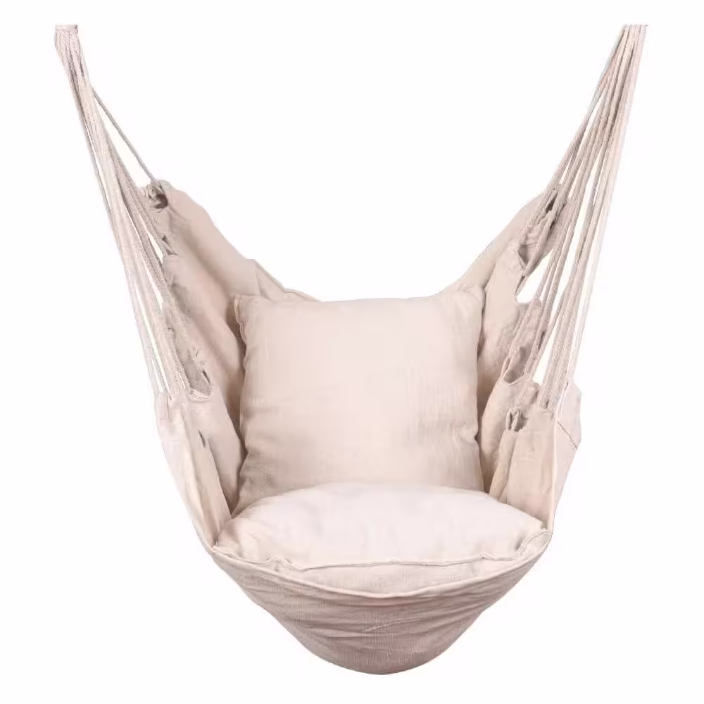 None 39.00 in. Portable Hammock Rope Chair Outdoor Hanging Air Swing in Beige