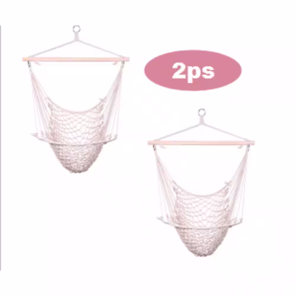 None 4 ft. Portable Cotton Hammock 2pcs Outdoor Garden Cotton Hanging Rope Air/Sky Chair Swing Beige Hammocks
