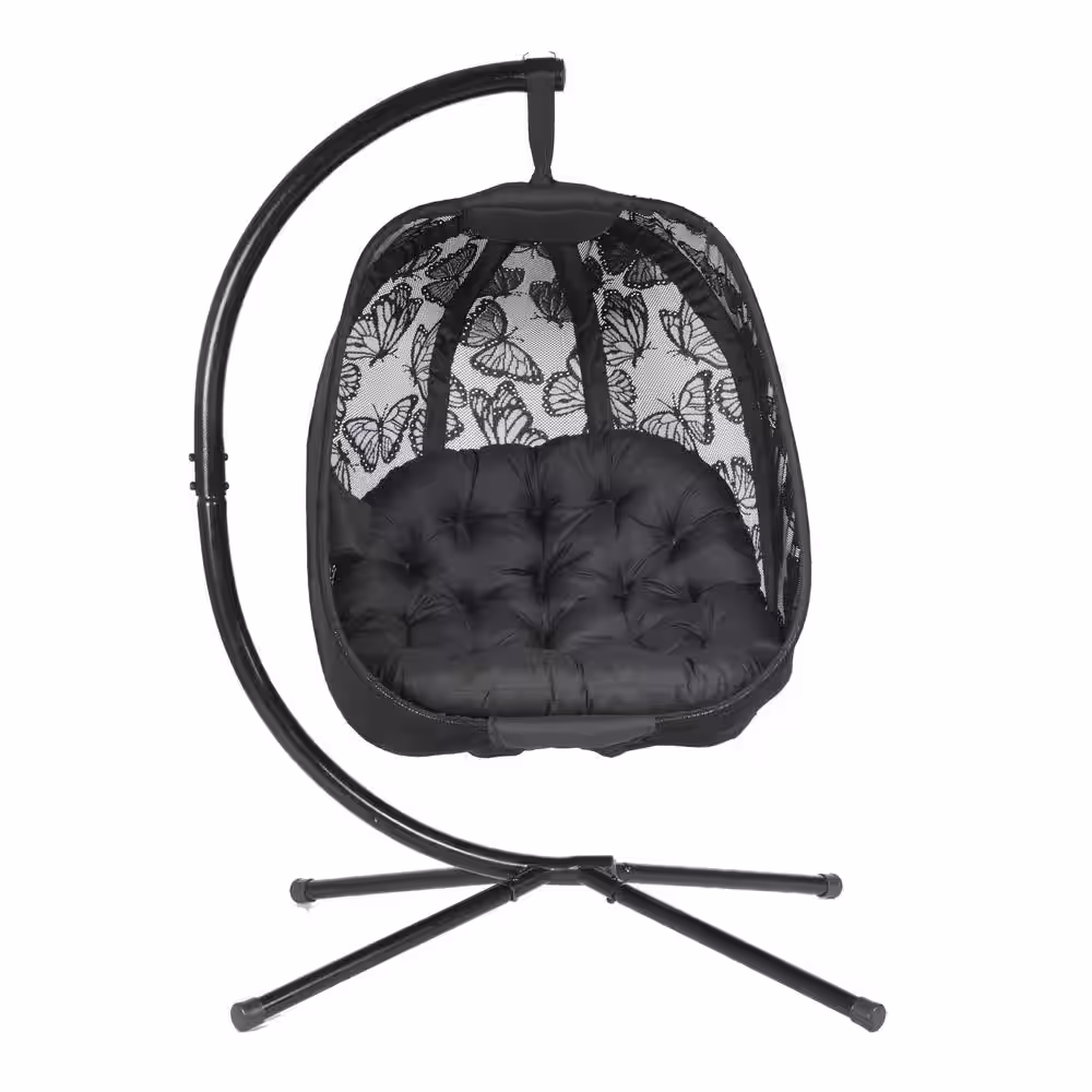 None 43 in. Free Standing Black Butterfly Design Outdoor Patio Hanging Egg Chair Hammock with Cushion and C Type Bracket