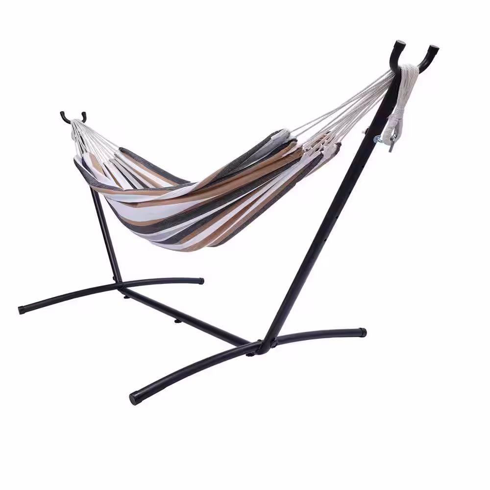 None 9.3 ft. Free Standing Hammock Bed Hammock with Stand in Brown Gray Striped