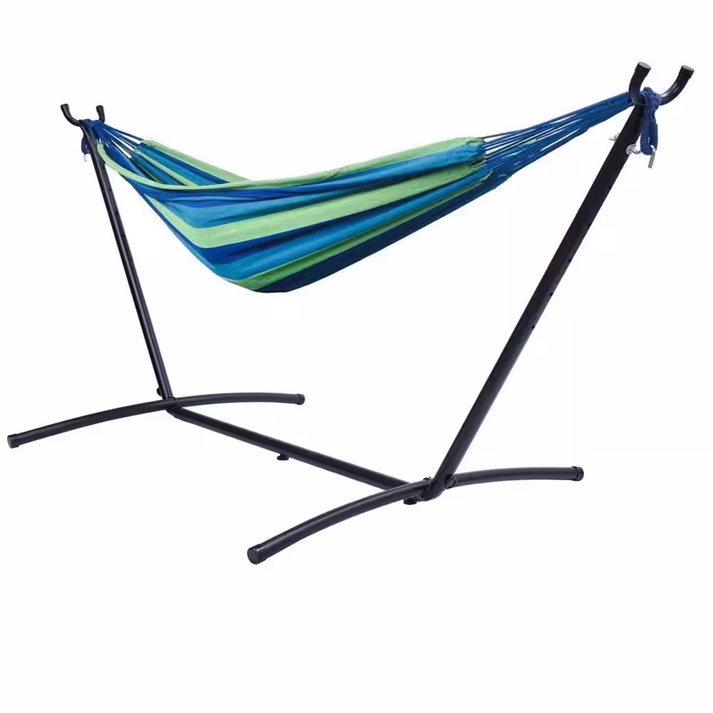 None 9.3 ft. Free Standing Hammock with Stand in Blue Green Striped