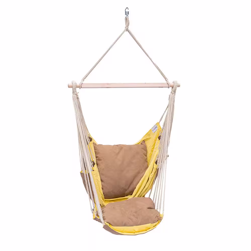 Sol Living Sereno 6.5 ft. Portable Single Polyester Hammock in Yellow with Brown Cushion