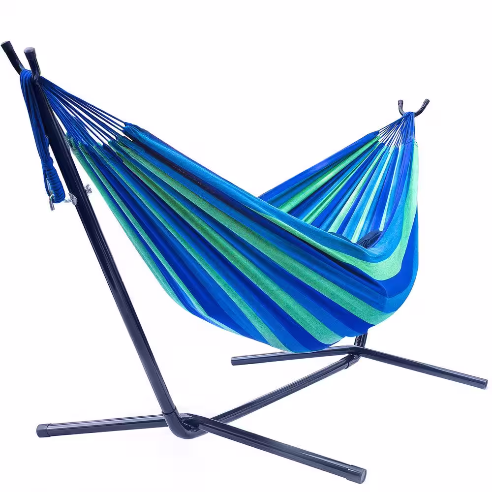 Sorbus 7 ft. Free Standing Adjustable Double Hammock Bed with Stand in Blue and Green