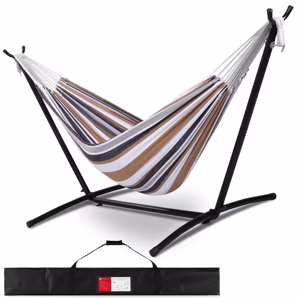 Alpulon 10 ft. 2-Person Cotton Hammock with Stand and Carry Bag