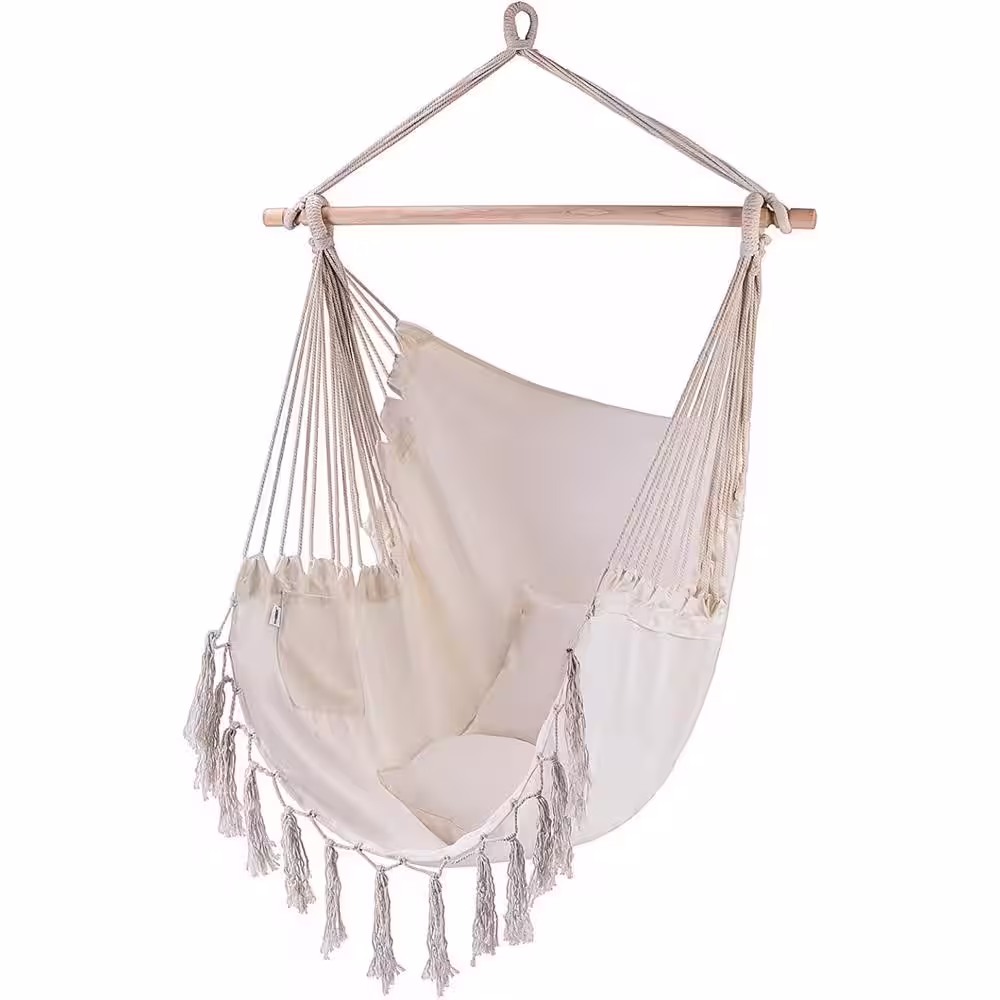 None Cenadinz 3.9 ft. Tassel Hammock Chair Hanging Rope Swing Seat with 2 Cushions