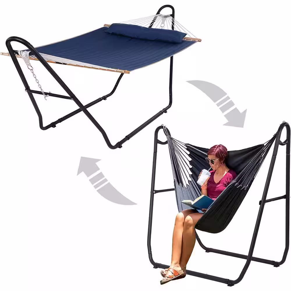 Atesun 12 ft. 2-In-1 Indoor/Outdoor Hammock Swing Chairs with Stand Included, Heavy-Duty Hammock in Solid Blue-2