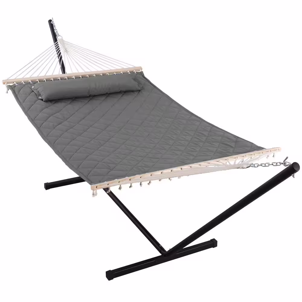 None Double Hammock with Stand 12 ft. Heavy-Duty Hammock with Stand for Outdoors Indoors 450 lbs. Weight Capacity, Dark Gray