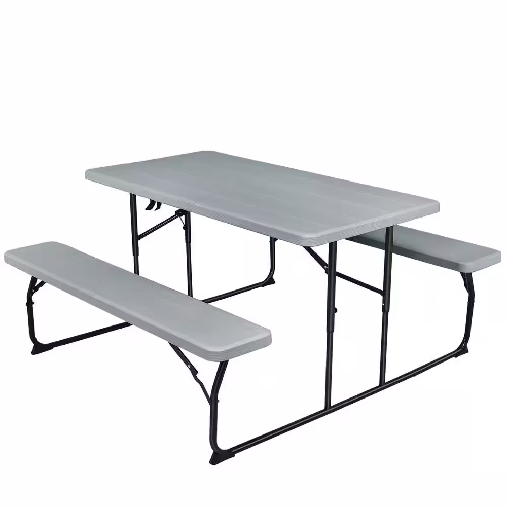 Gymax Metal Outdoor Folding Picnic Table and Bench Set for Camping BBQ with Steel Frame Grey