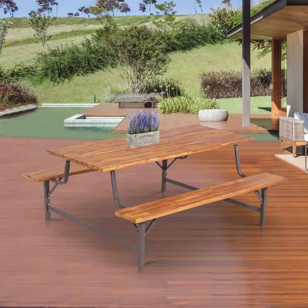 GARDENISED Stained Rectangular Wood 29.25 in. H Picnic Table A-Frame Outdoor Patio Deck Garden