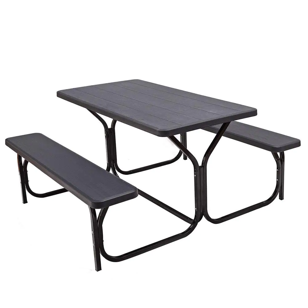 CASAINC Black Rectangular Plastic Outdoor Picnic Table with 2 Bench