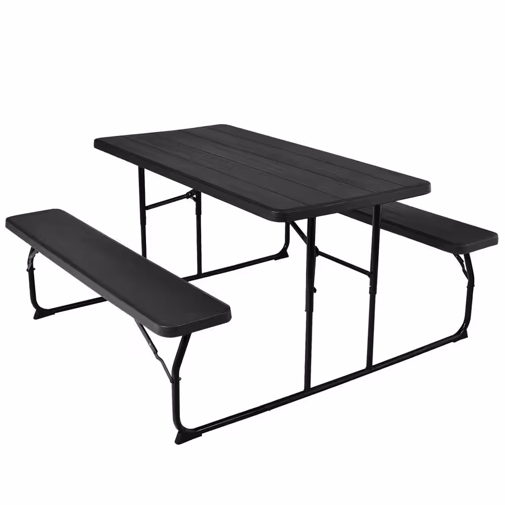 HONEY JOY Black Indoor & Outdoor Folding Picnic Table with Bench Seat Heavy-Duty Portable Camping Table Set