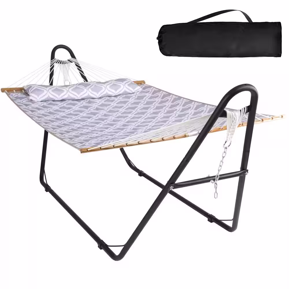 Atesun 10 ft. Portable Hammock with Stand, 2-Person Hammock with Strong Spreader Bar, 475 lbs. Capacity, Gray