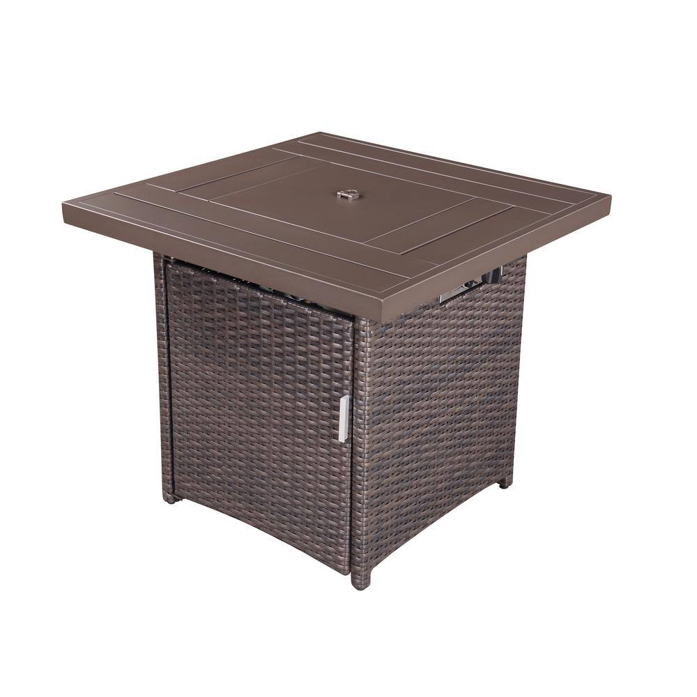 None 28 in. Brown Square Wicker Outdoor Propane Gas Fire Pit Table with Steel Tabletop