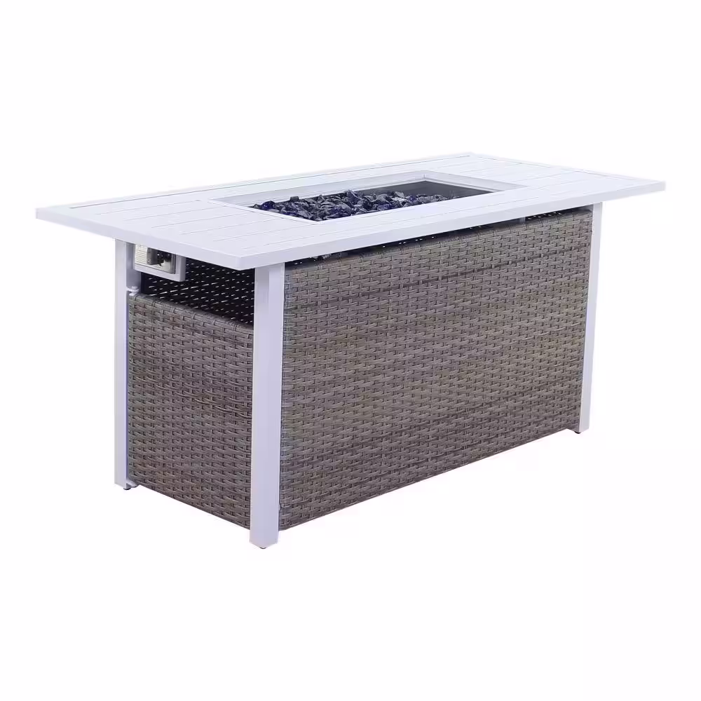 Courtyard Casual Santa Fe Aluminum Rectangle Fire Pit in White with 18 lbs. of Blue Fire Glass