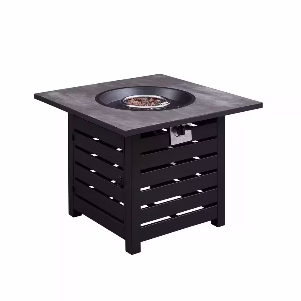 maocao hoom 34 in. x 24.5 in. 40000 BTU Square Black Metal Propane Gas Fire Pit Table with Dark Gray Table Top